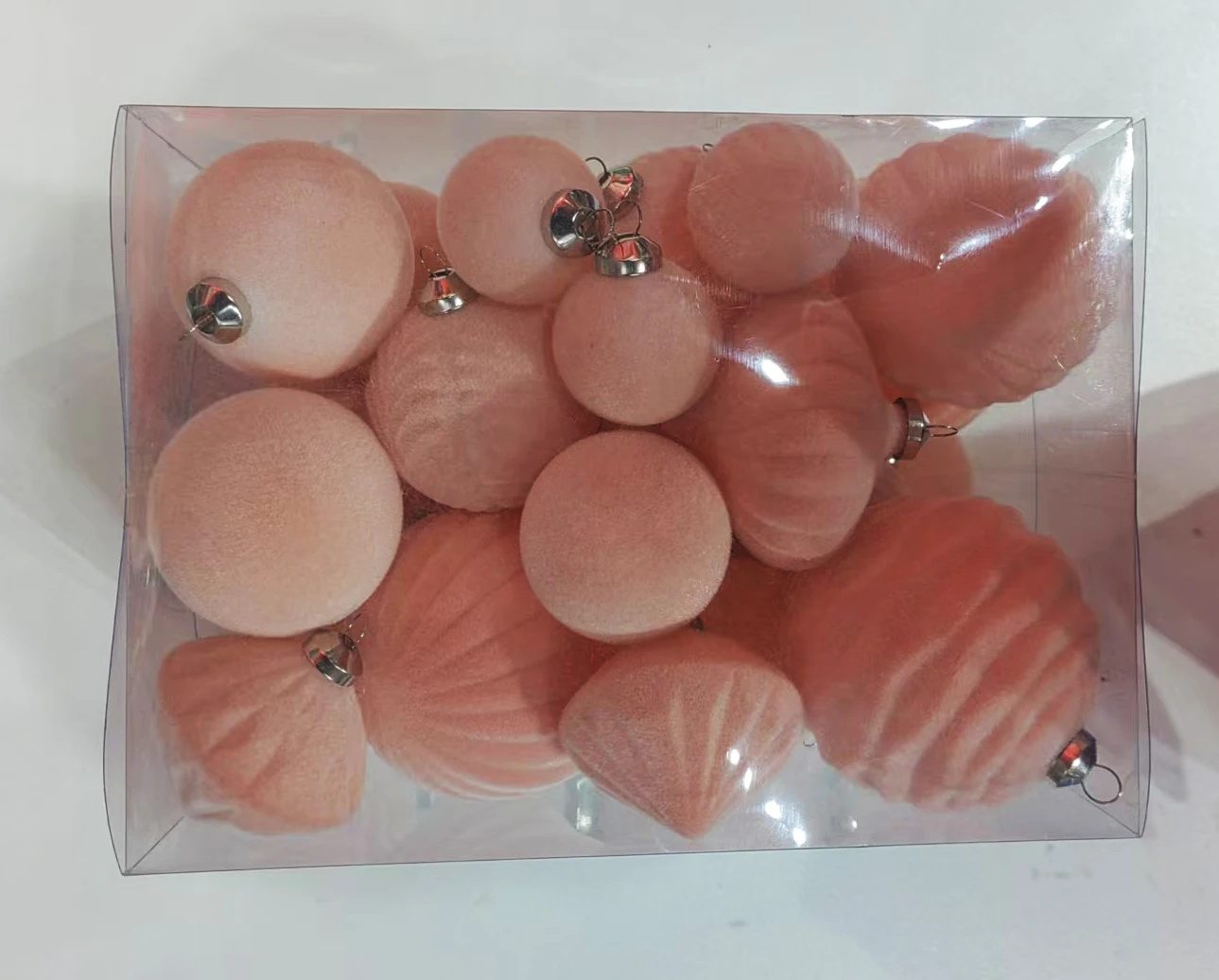 工場卸売クリスマスボールセットゴールデンシニーとピンクとマット手描き透明透明プラスチッククリスマスボールセット